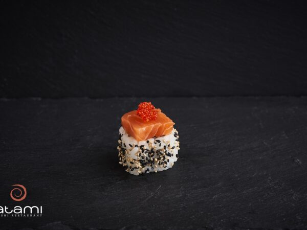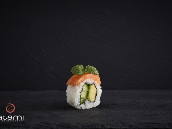 Avocado, Agurk, basilikum, sesam, toppet med tobiko og laks, med japansk yuzu dressing (8 stk.)