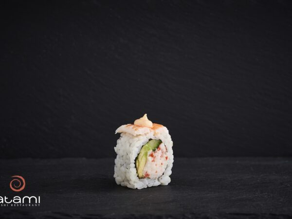 Surimi, Avocado, Agurk,toppet med Tempura Crisp Hjemmelavet Sauce (8 stk.)